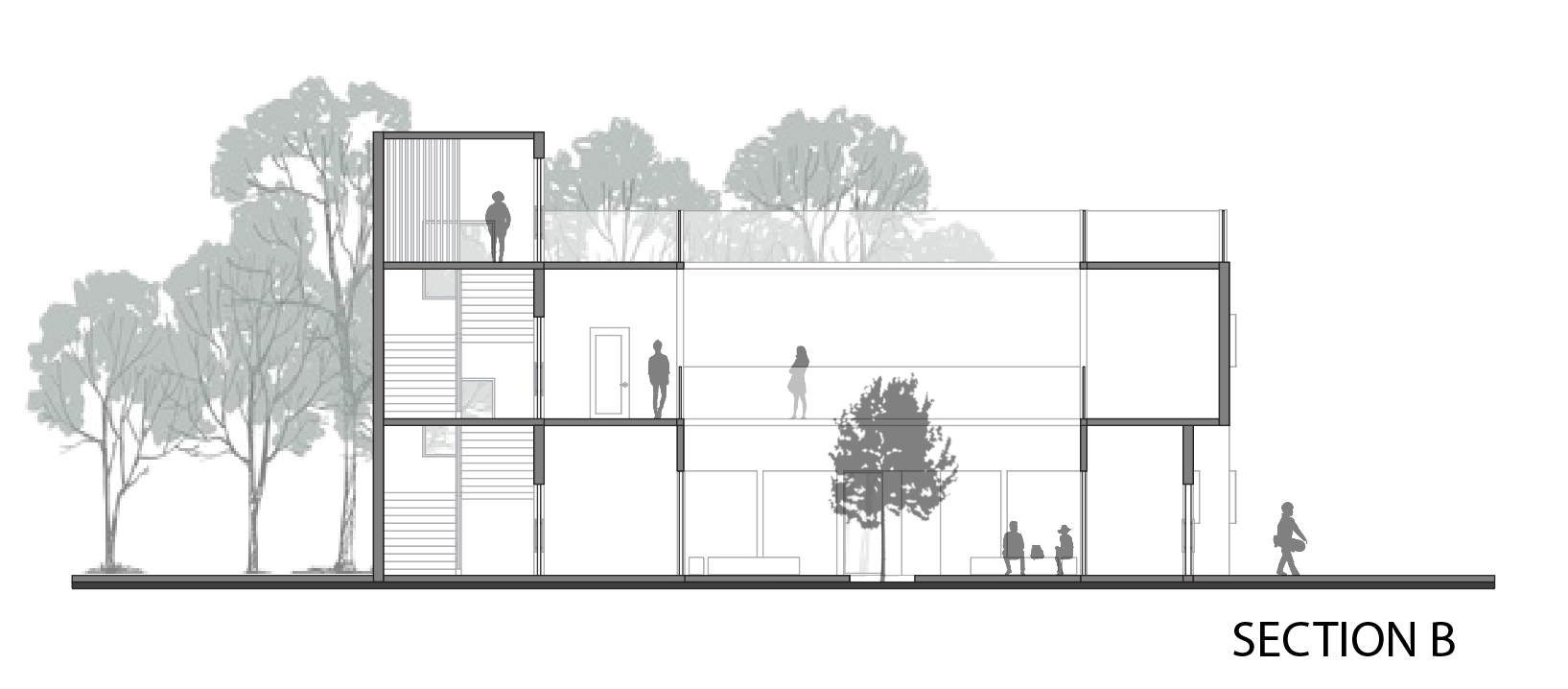 An art school to be located at a nearby park. With a design guided by the surrounding greenery and pond, the school’s central courtyard and views teach the importance of nature and its ability to inspire the artist.